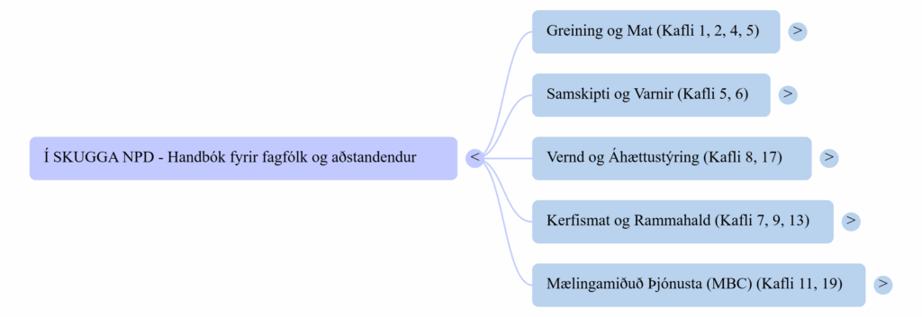 Þessi vefsíða er stafrænn fylgifiskur bókarinnar “Í skugga NPD — Handbók fyrir fagfólk”. Hér finnur þú gagnvirk verkfæri til að styðja við greiningarferli, áhættumat og meðferðaráætlanir þegar unnið er með persónuleikaraskanir, sérstaklega í flóknum kerfismálum (barnavernd, forsjármál).